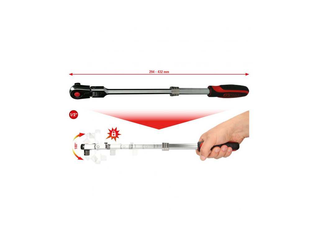 1/2" SlimPOWER teleskopická račňa s prepínacou páčkou, 72 zubov, 914.1220