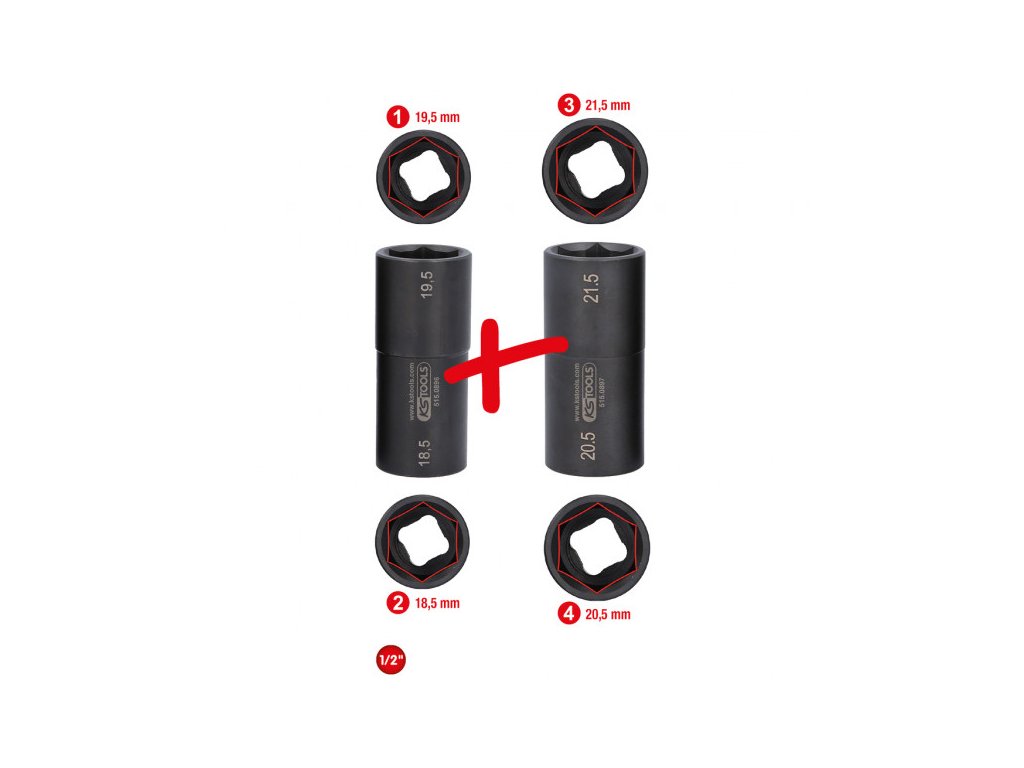 1/2" súprava špeciálnych silových nástrčných orechov pre hliníkové disky pre Ford, 18,5 / 19,5 / 20,5 / 21,5 mm, 2-dielna, 515.0895