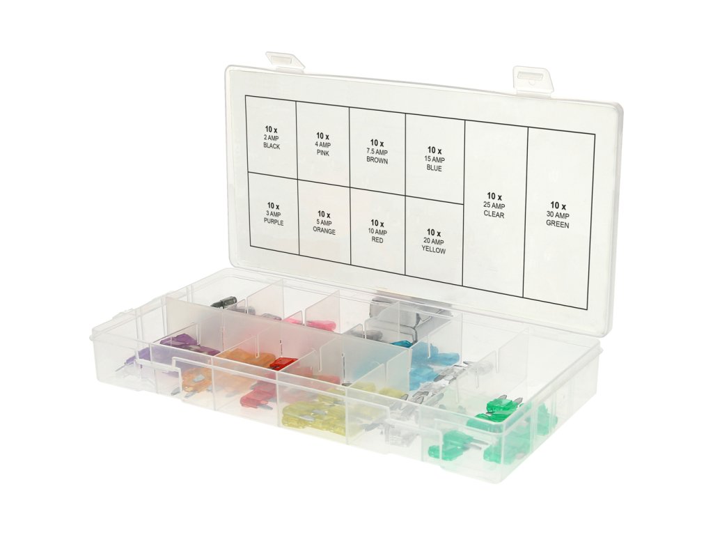 Sortiment mini poistiek,2-30A, 100-dielny