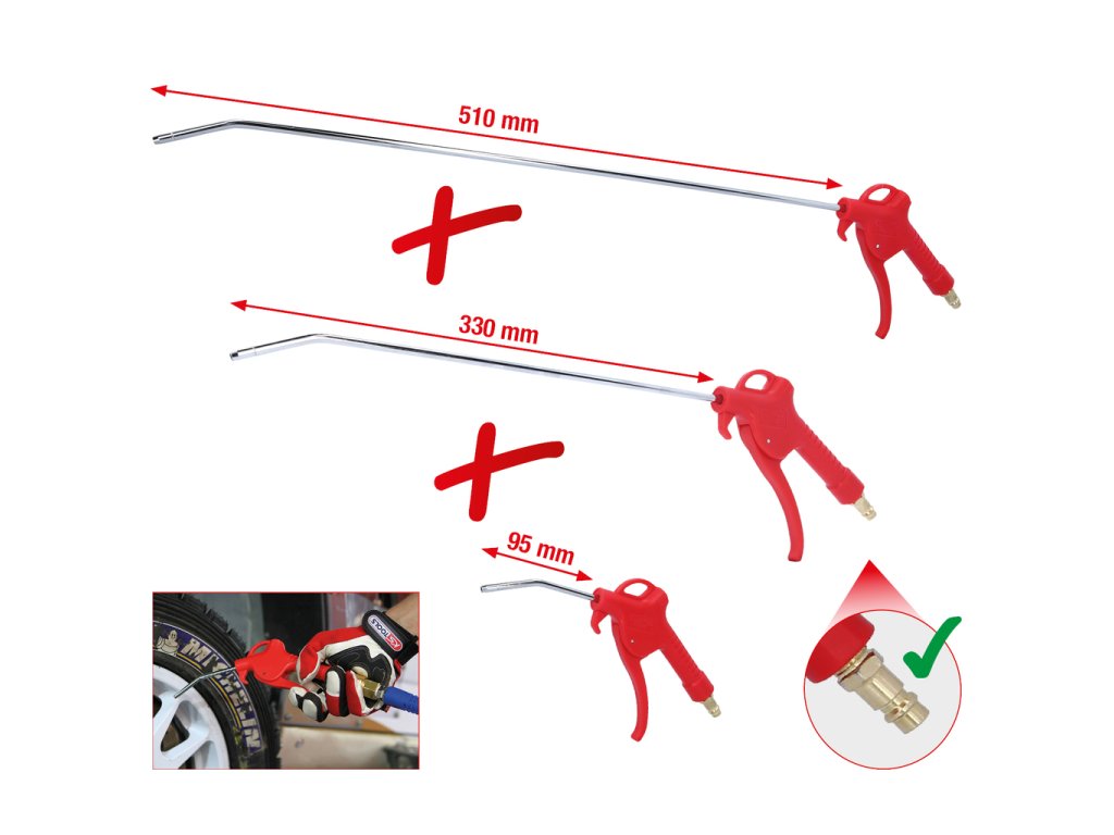 Súprava pneumatických vyfukovacých pištolí, 3-dielna, 95-510 mm 515.1921